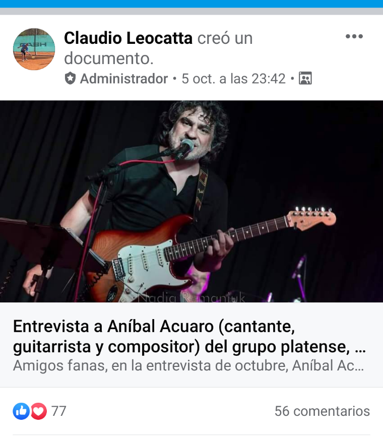 Entrevista en la página LOS FANAS DEL ROCK PROGRESIVO de Claudio Leocatta